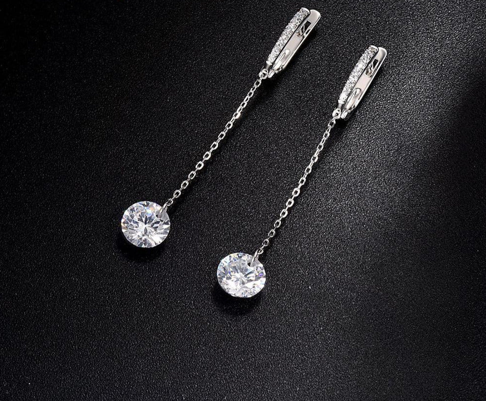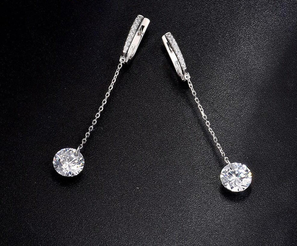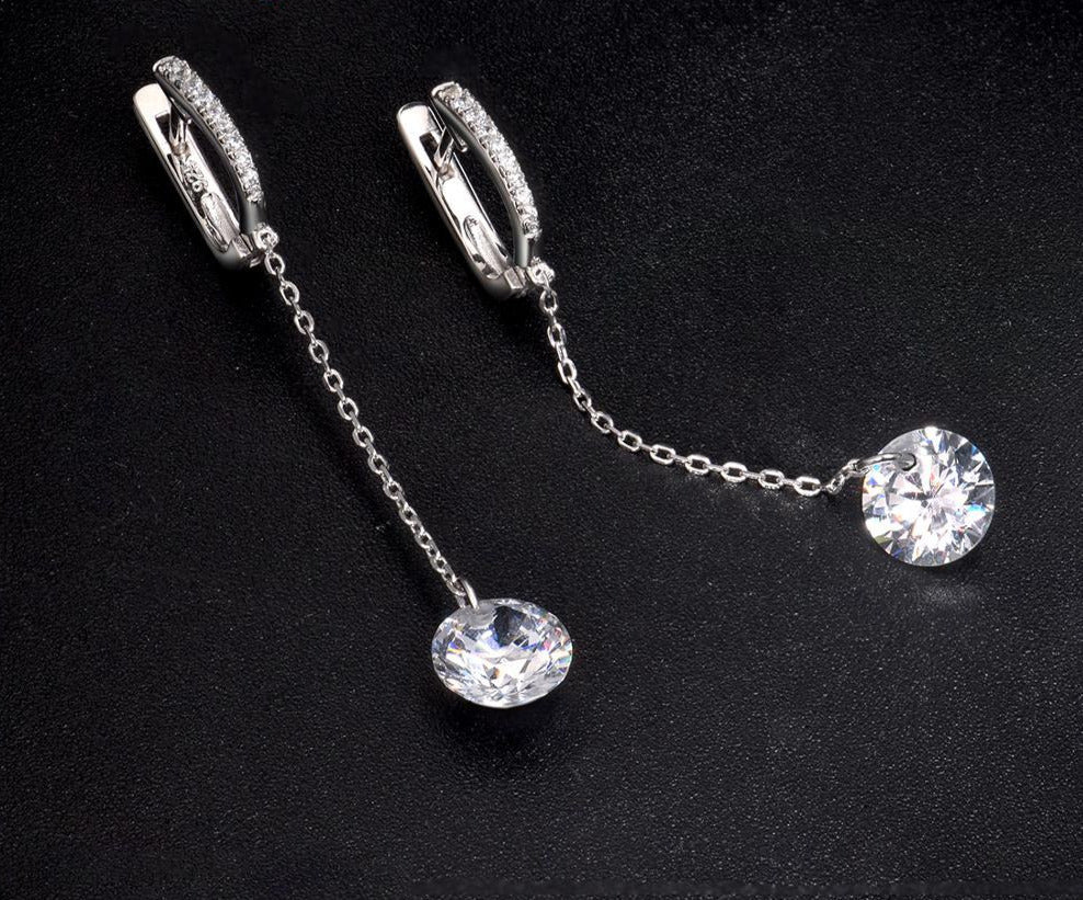 These simple earrings feature a 5mm sized (0.46 carat) main stone with a simple 1 row small drop. They offer a slight twist on a classic stud and works for any occasion. These earrings feature our top quality 5A flawless zirconia. These lab created simulated diamonds produce an incredible shine and brilliance. Each are carefully hand set by master jewelers onto a genuine 925 sterling silver base. The item is then rhodium coated to give you the exact same finish of white gold jewelry. These earrings essentially give you the look, feel and experience of high end fine jewelry at an affordable price.