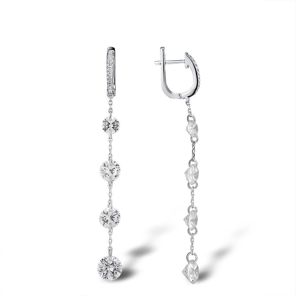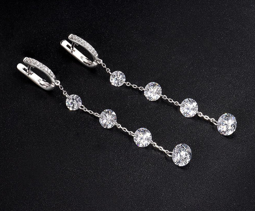 These simple earrings feature a 5mm sized (0.46 carat) main stone with a simple 1 row small drop. They offer a slight twist on a classic stud and works for any occasion. These earrings feature our top quality 5A flawless zirconia. These lab created simulated diamonds produce an incredible shine and brilliance. Each are carefully hand set by master jewelers onto a genuine 925 sterling silver base. The item is then rhodium coated to give you the exact same finish of white gold jewelry. These earrings essentially give you the look, feel and experience of high end fine jewelry at an affordable price.