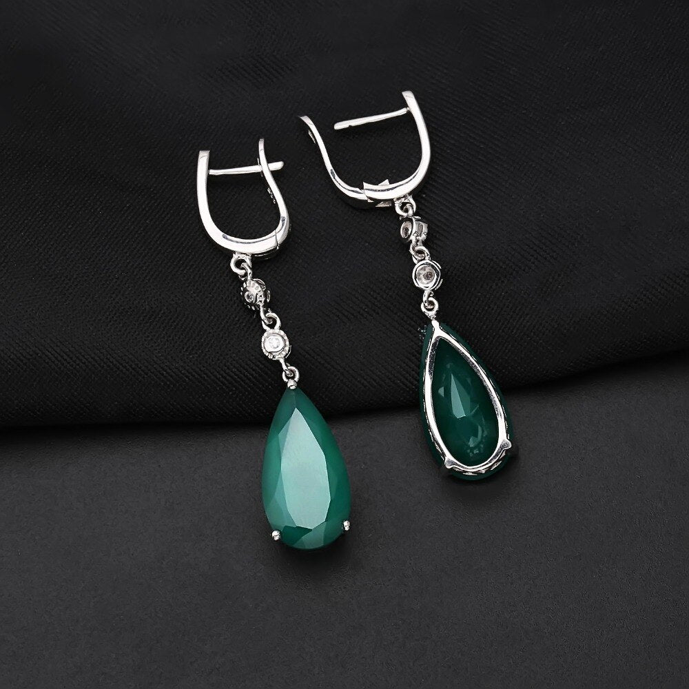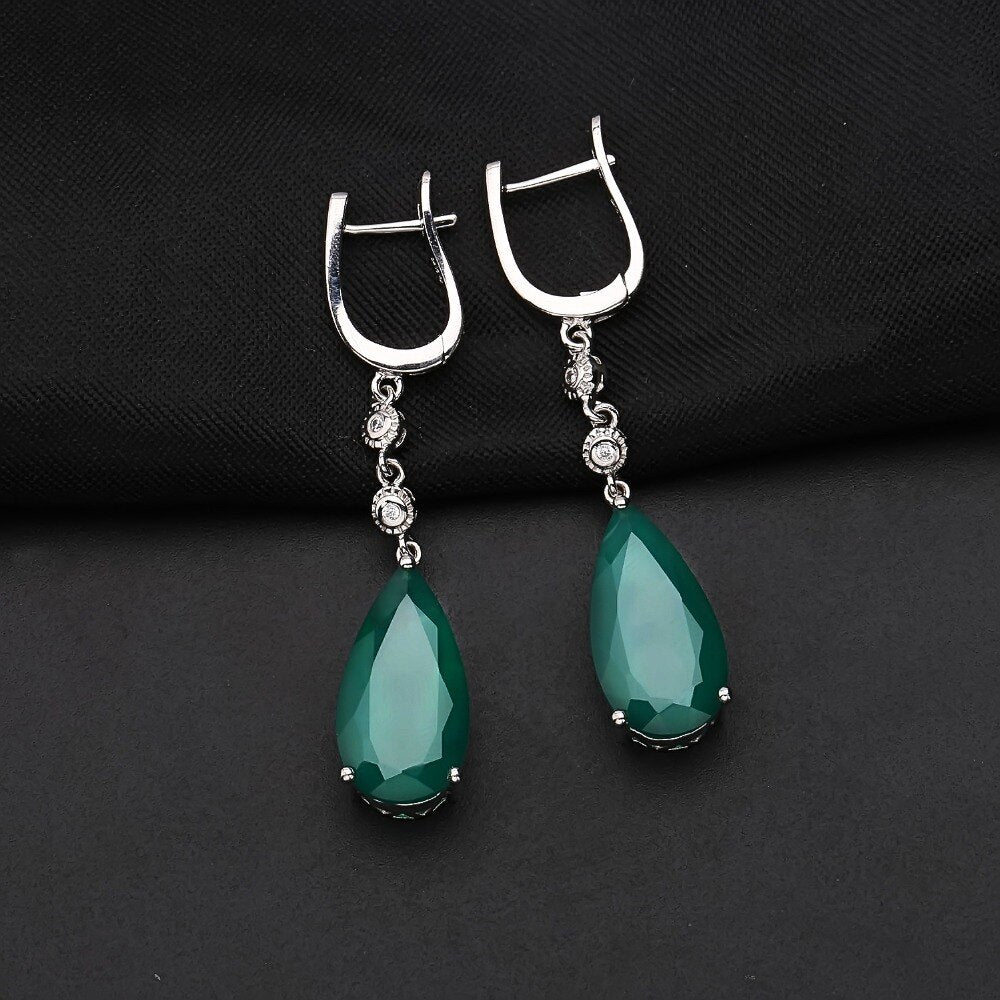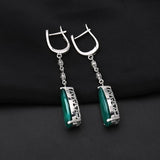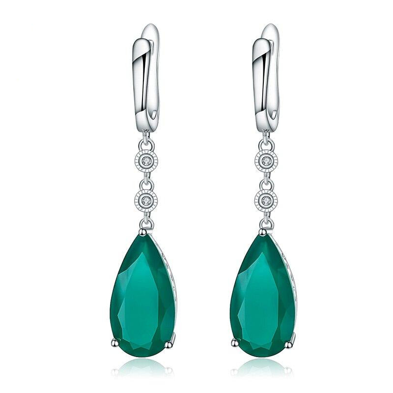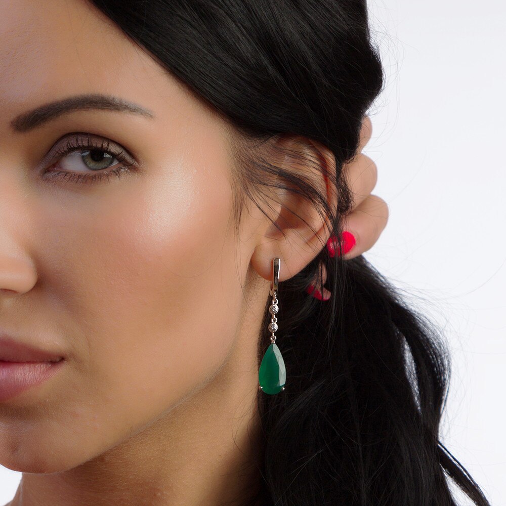 Elegant drop down earrings with amazing shine. These stunning drop down earrings feature graduating stones and ends in a 7.88 carat brilliant pear cut stone. They are made out of genuine 925 sterling silver, finished with a layer of rhodium to reduce tarnishing and give it the deep shine of white gold jewelry.