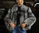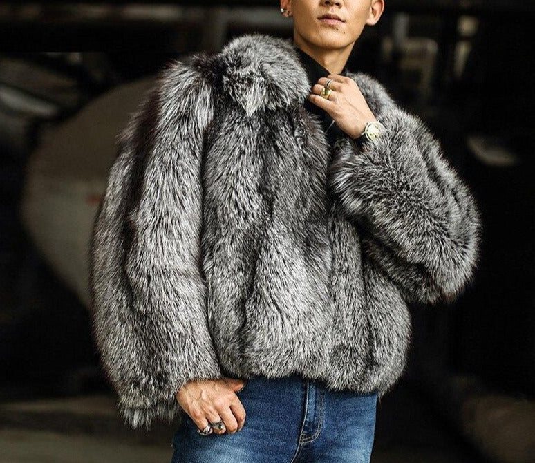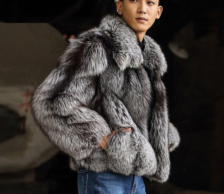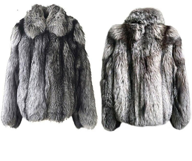 If you want to feel as charming and mysterious as the 1940's dark ladies, this full length overcoat with silver fox is just perfect. Full length grants maximum protection from the cold. Snap buttoning and two slit pockets. Inner lining printed all over with corporate lettering. Luxury and originality are embodied in this soft jacket. inspirational quote by Pisani Maura..