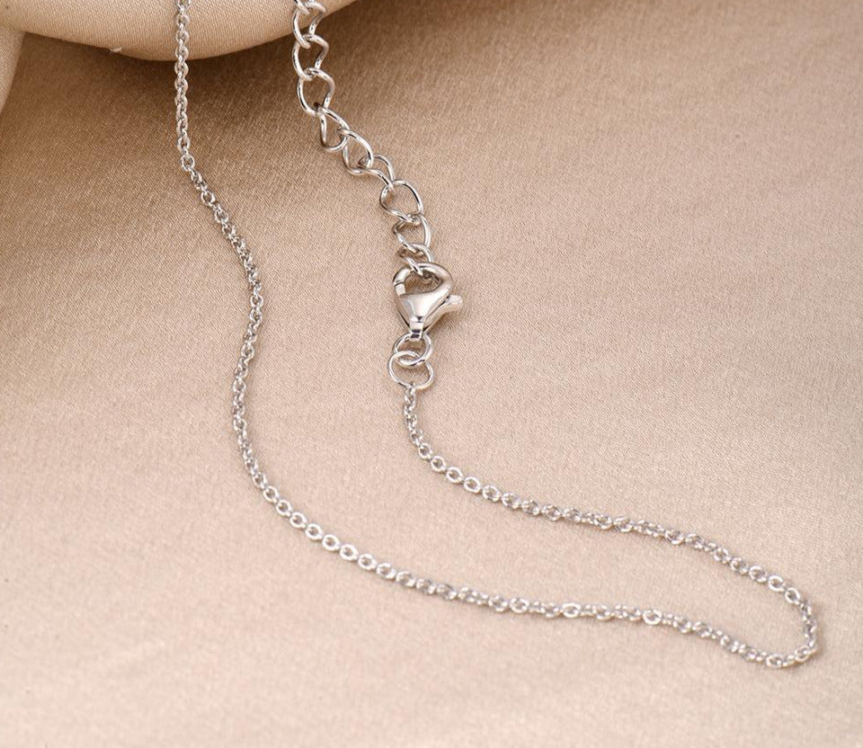 This high quality sterling silver Italian made chain features diamond cut moon shape cuts into the beads. This incredible detailing gives you a unique sparkle and shine once the light hits the chain. Its a small 2mm size chain that's good for mini or micro pendants. This chain is rhodium plated and gives you the exact look and feel of a white gold chain.