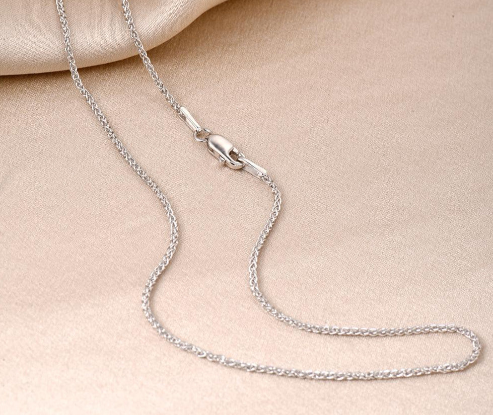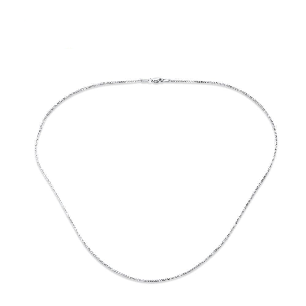 This high quality sterling silver Italian made chain features diamond cut moon shape cuts into the beads. This incredible detailing gives you a unique sparkle and shine once the light hits the chain. Its a small 2mm size chain that's good for mini or micro pendants. This chain is rhodium plated and gives you the exact look and feel of a white gold chain.