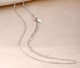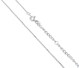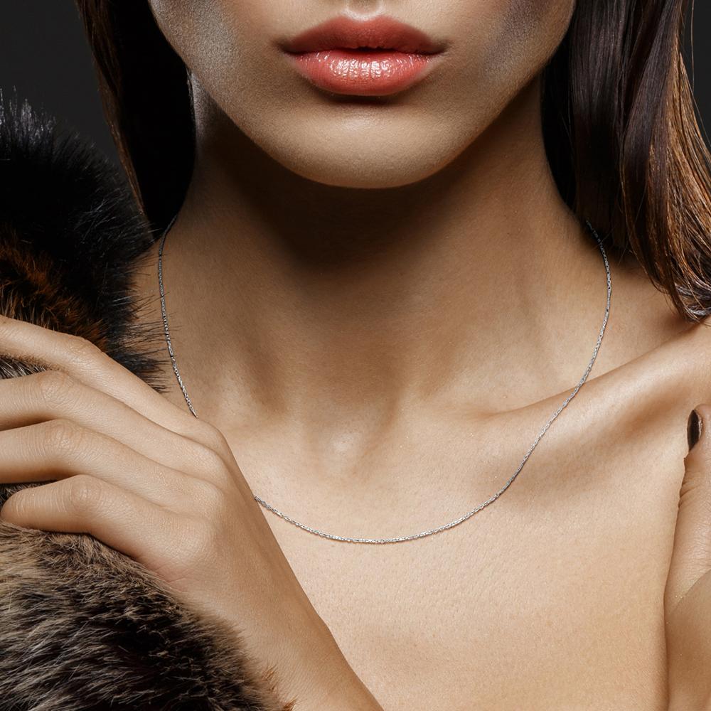 This high quality sterling silver Italian made chain features diamond cut moon shape cuts into the beads. This incredible detailing gives you a unique sparkle and shine once the light hits the chain. Its a small 2mm size chain that's good for mini or micro pendants. This chain is rhodium plated and gives you the exact look and feel of a white gold chain.