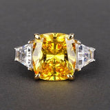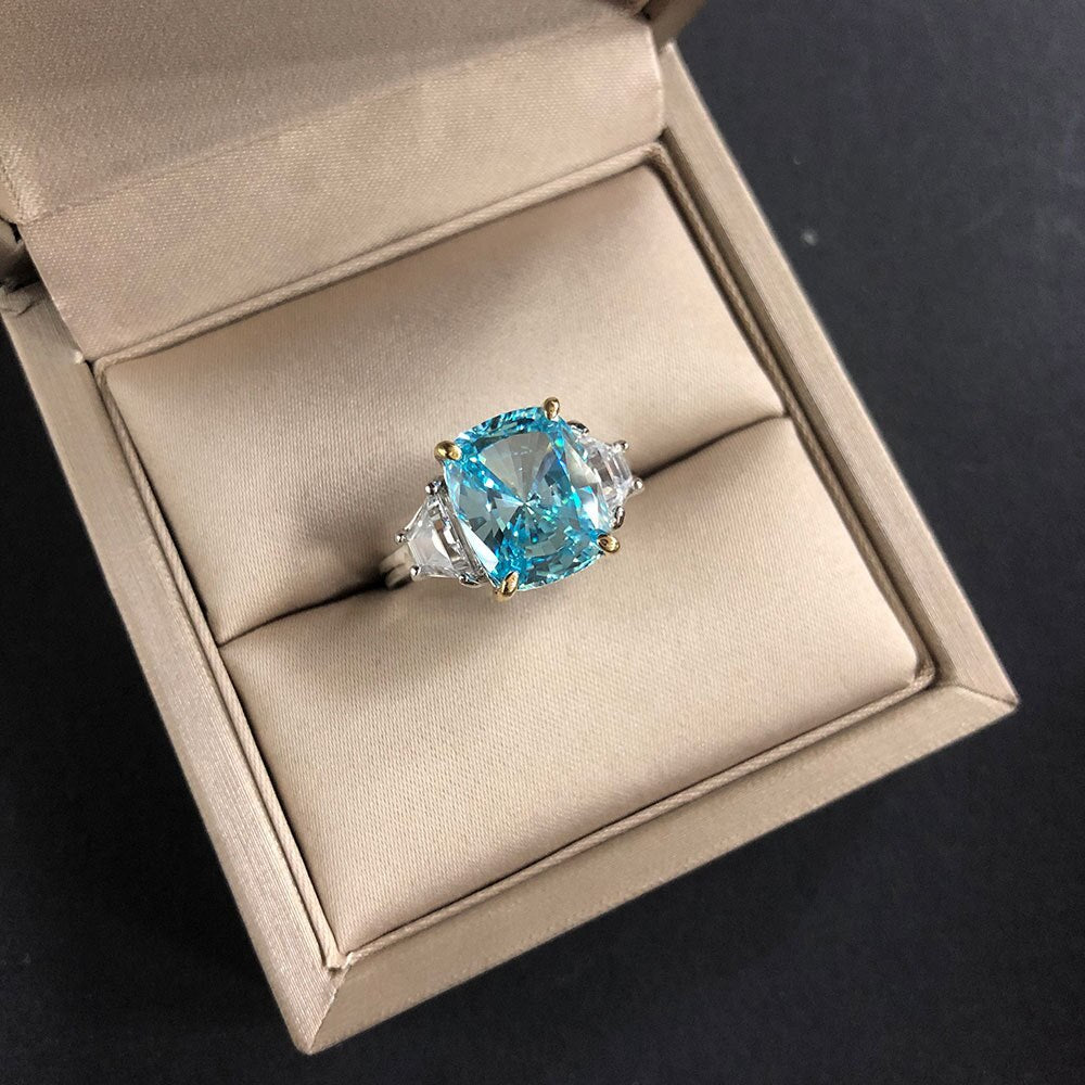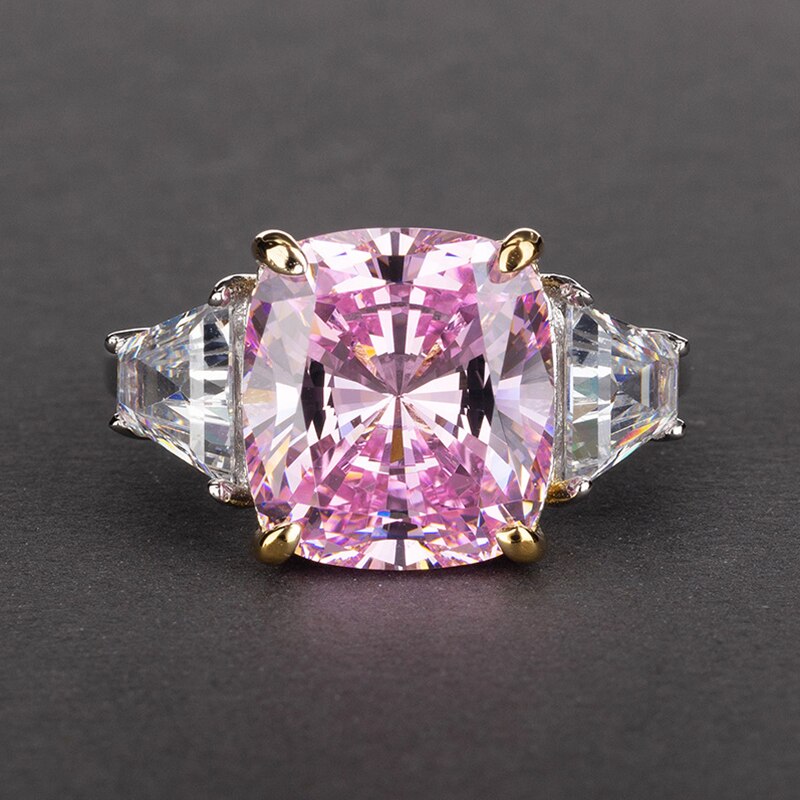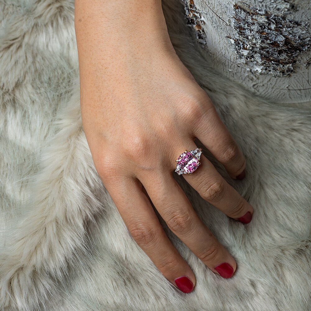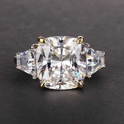 This stunning ring features a 4.50 carat 10x12mm cushion cut center stone with a classic 4 prong setting. This simple design is impressive and eye-catching.