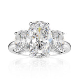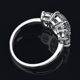 This stunning ring replicates a $14,500 look with a 3 carat pear cut flawless center stone, and trapezoid baguette cut side stones. This amazing timeless ring is a perfect addition for your collection and serves well as an engagement ring as well. This beautiful ring gives you the same look of white gold and diamonds at a fraction of the cost. The stones are flawless moissonite, which sparkle with incredible fire and brilliance. They are all individually hand set by experienced master jewelers. The ring is made out of genuine 925 sterling silver. Just like white gold jewelry, the metal has a lustrous rhodium top layer which protects it from tarnish.