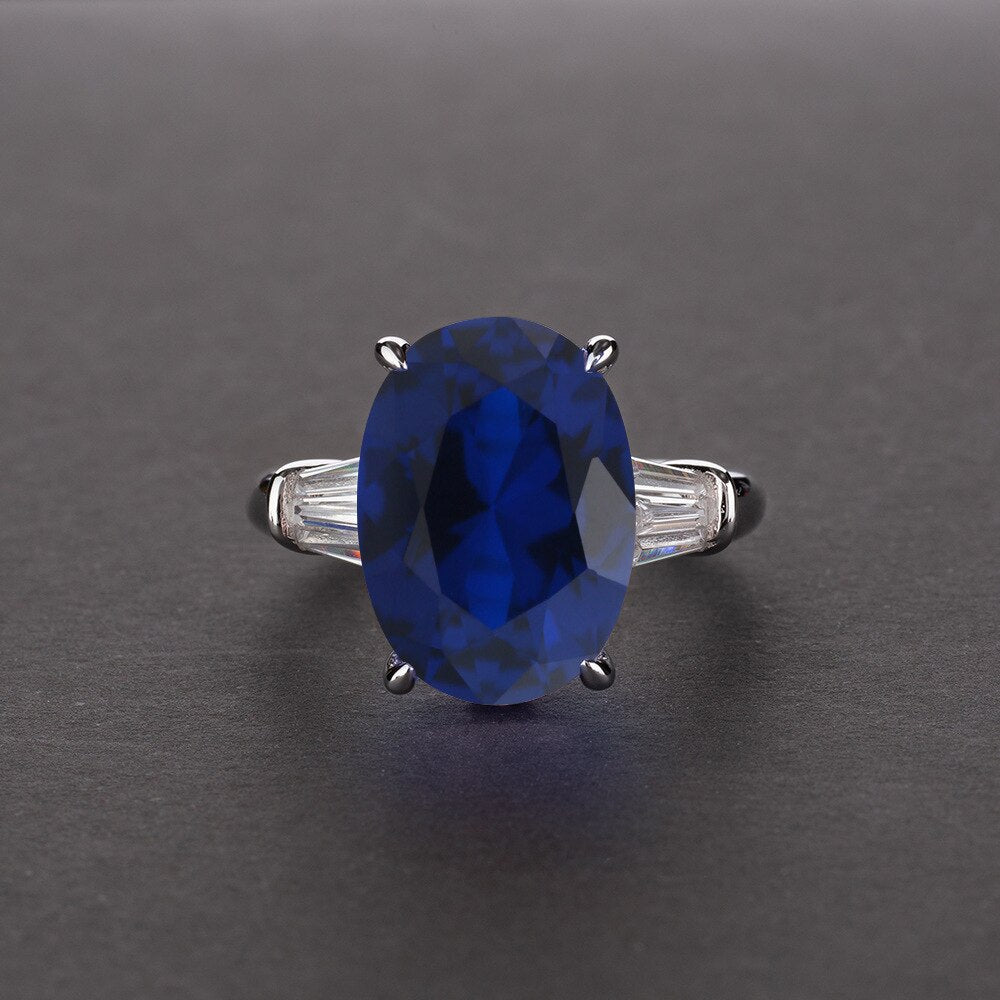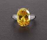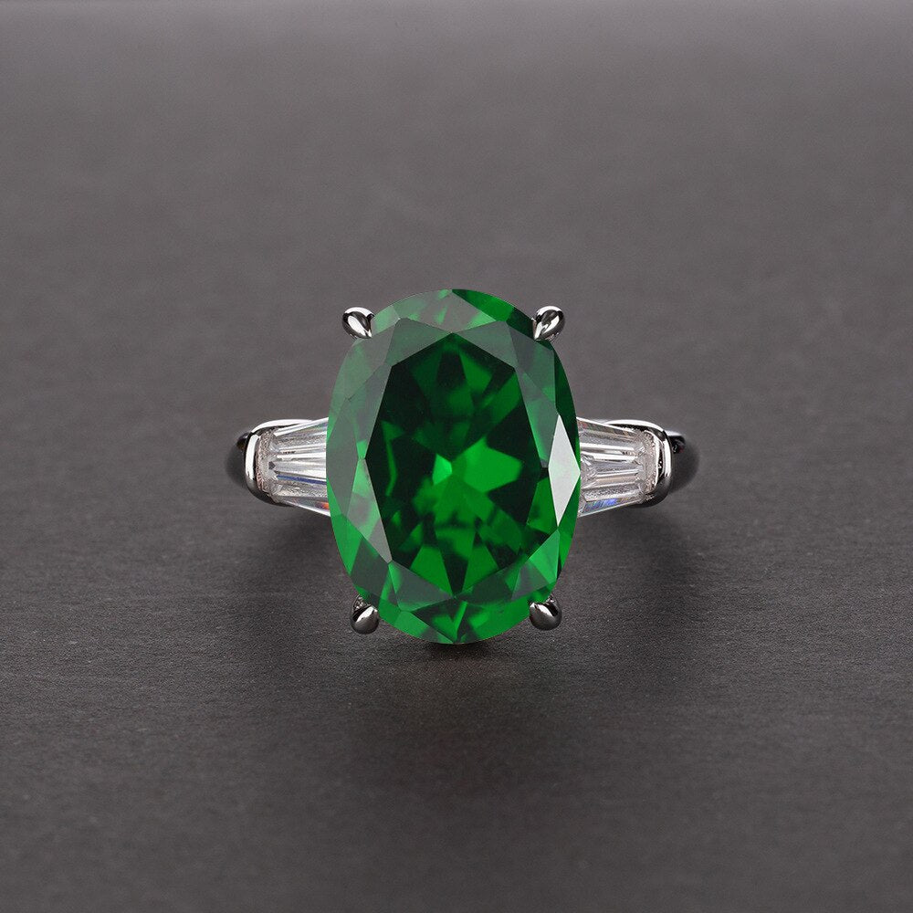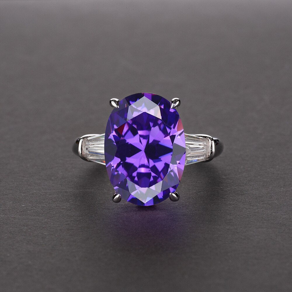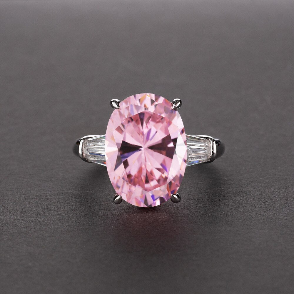 This oversized statement piece features 14mm x 14mm oval cut flawless stones prong set on a 3.5mm thick band. This is a great fashion piece that looks good dressed up or down. This beautiful ring gives you the same look of white gold and diamonds at a fraction of the cost. The stones are 5A flawless moissonite, which sparkle with incredible fire and brilliance. They are all individually hand set by experienced master jewelers. The ring is made out of genuine 925 sterling silver. Just like white gold jewelry, the metal has a lustrous rhodium top layer which protects it from tarnish.
