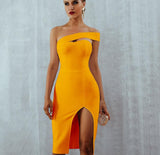 Simple yet sumptuous. This is what better describes this stretch viscose crepe strapless sheath dress. It features a mebroidered-decoration that replicates the brand’s ability to play with the futuristic vision of this collection on a single shoulder. Zipper fastening at centre back. Large slit open on the left thigh.