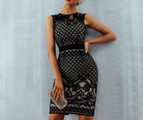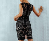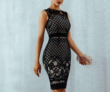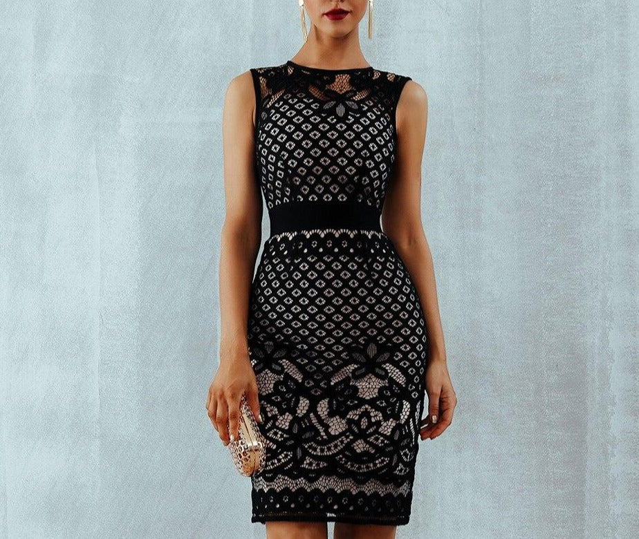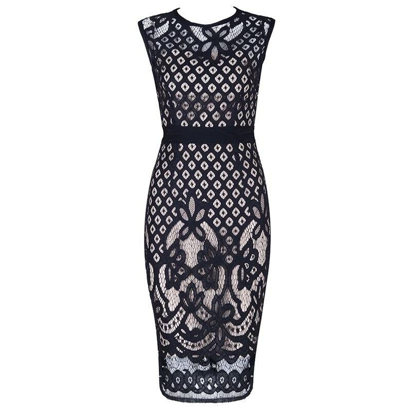 The 1970’s glam is featured on this lace-covered dress. Plunge back and hook fastening neckband. Tight fitting bodice and soft and wide skirt. Zipper fastening at centre back.