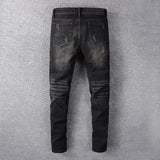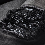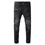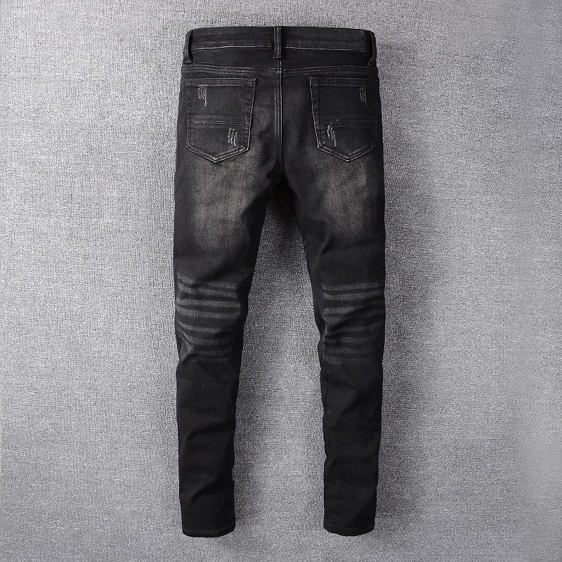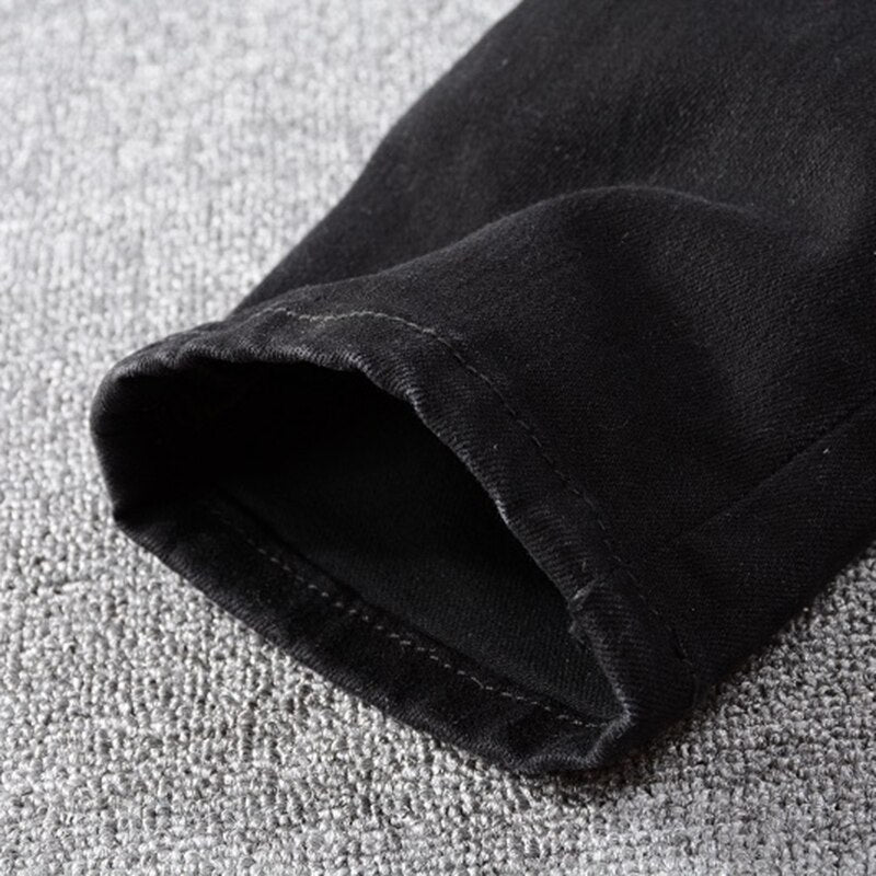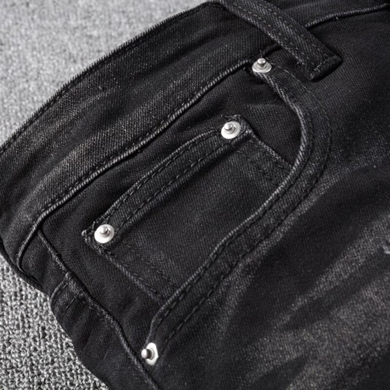 One of the features of these stone washed stretch denim 6 pocket pants are the deliberate adds in perfect modern street style.Decorations have been added all over. Shiny decorations are overprinted on both legs and on the right rear pocket. Single metal button at waist. Lower back pockets and a leather patch with the brand’s hexagonal logo on the right one. Two needle stitching. Fit: Super Straight