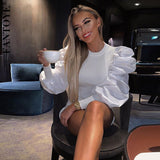 This soft fully draped tulle sheath jersey shirt features a stretch body that will shape the figure. Long draped Sleeves . Hooks fastening on the back.