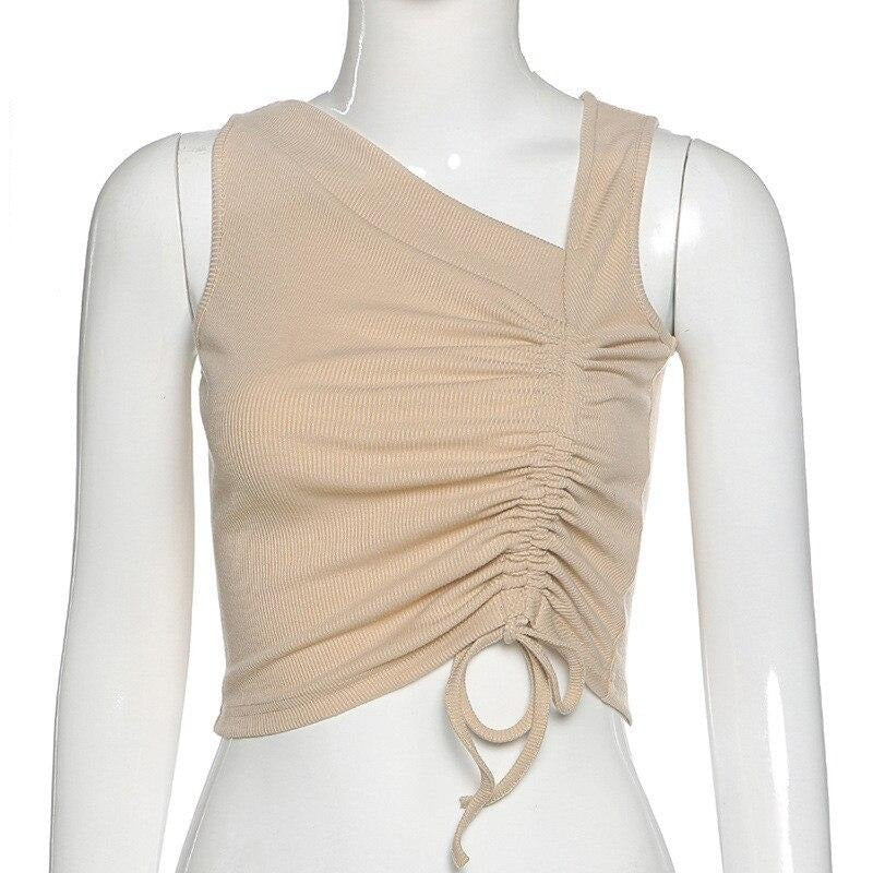 Pisani Maura created Pornografitti, a special capsule collection to demonstrate that this "romantic" item could reveal a very "aggressive" side. Satin long one shoulder top. Asymmetrical plunging neckline. Enriched by a frontal ribbon for fastening.