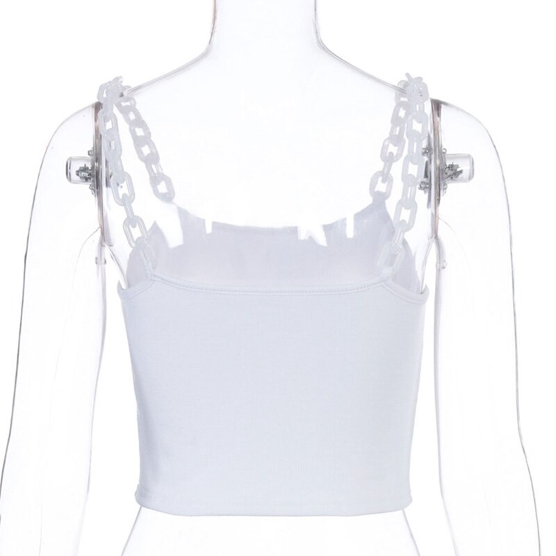 Pisani Maura created Pornografitti, a special capsule collection to demonstrate that this "romantic" color could reveal a very "aggressive" side. This bandeau top, made of cotton, is enriched by an polyester set of chain shoulder straps.