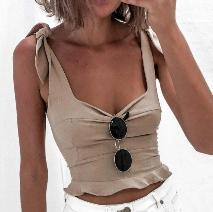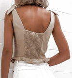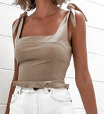 The tops Collection is a branch of Pisani Maura Collection created to respond to sports & fashion lovers’ necessities. Attention to materials and production processes is essential. Like this stretch cotton jersey sleeveless top. Bowtie knot seals the shoulder straps above the shoulder. Two needle stitching hems.