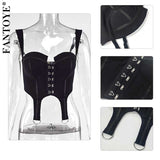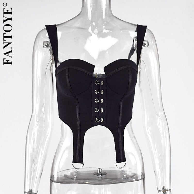 This soft fully rock stylized sheath corset features a stretch body that will shape the figure. Thin tank top shoulder straps. Hooks fastening on the front.
