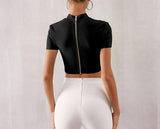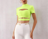 Pisani Maura pays tribute to rock. The name of the iconic musical style is embroidered in obtained on the front of this cotton jersey crop T-shirt with slits and openings at the chest and belly level. The brand's lettering is printed on the back right underneath the hexagonal logo patch. Ribbed neckline. Two needle stitching hems.