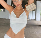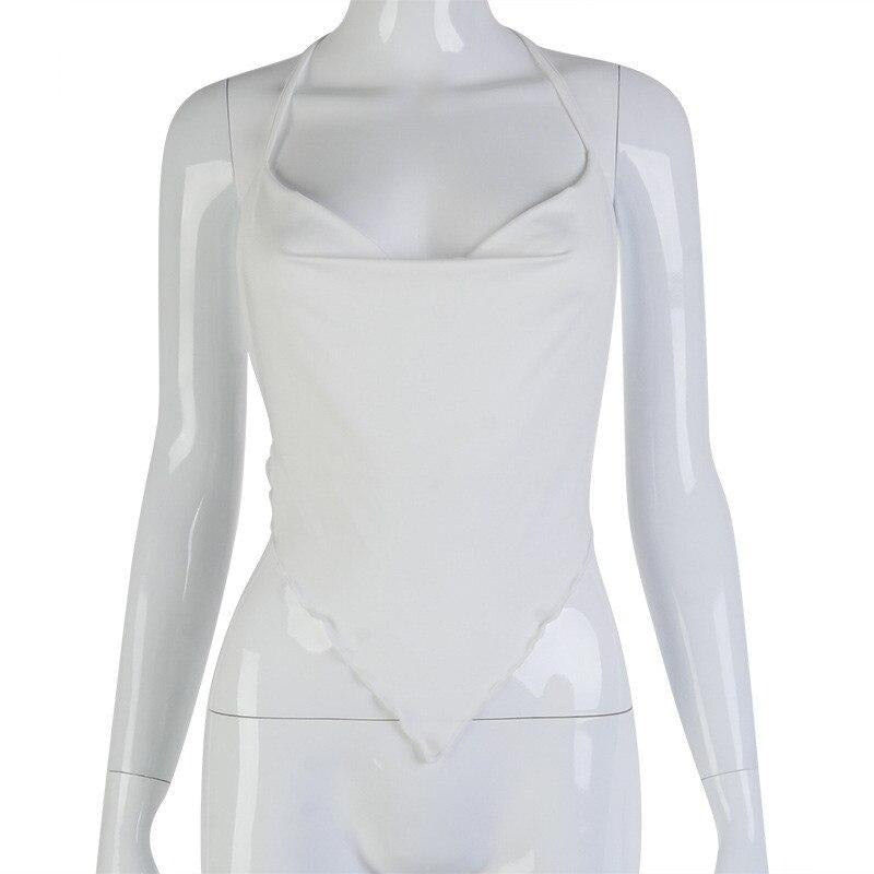 Pisani Maura created Pornografitti, a special capsule collection to demonstrate that this "romantic" item could reveal a very "aggressive" side. Satin short shoulder top. Symmetrical plunging neckline. Bare back.