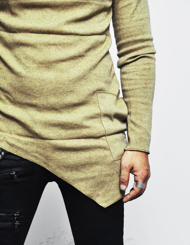 The simple, plain lines of this cashmere crewneck pullover are distinguished by a turtle neck and the asymmetrical design. Woven ribbed hems.