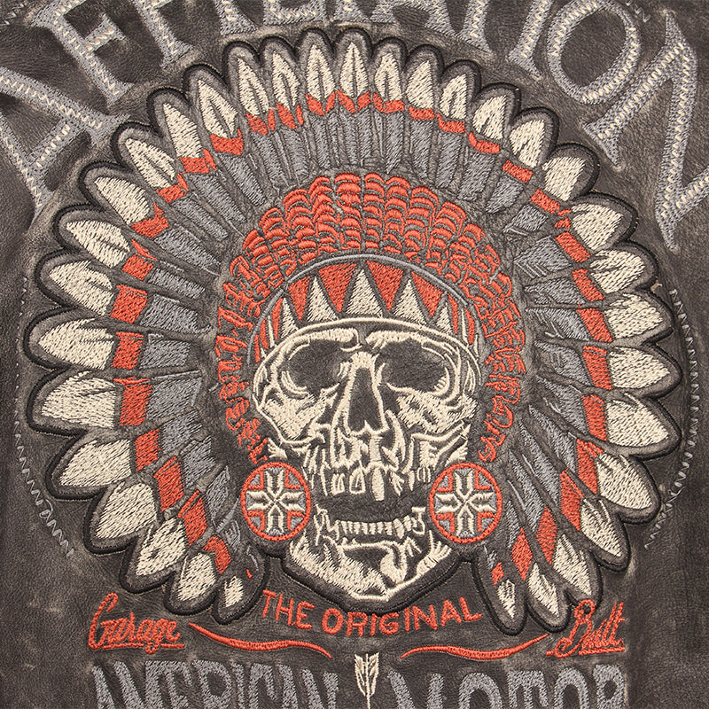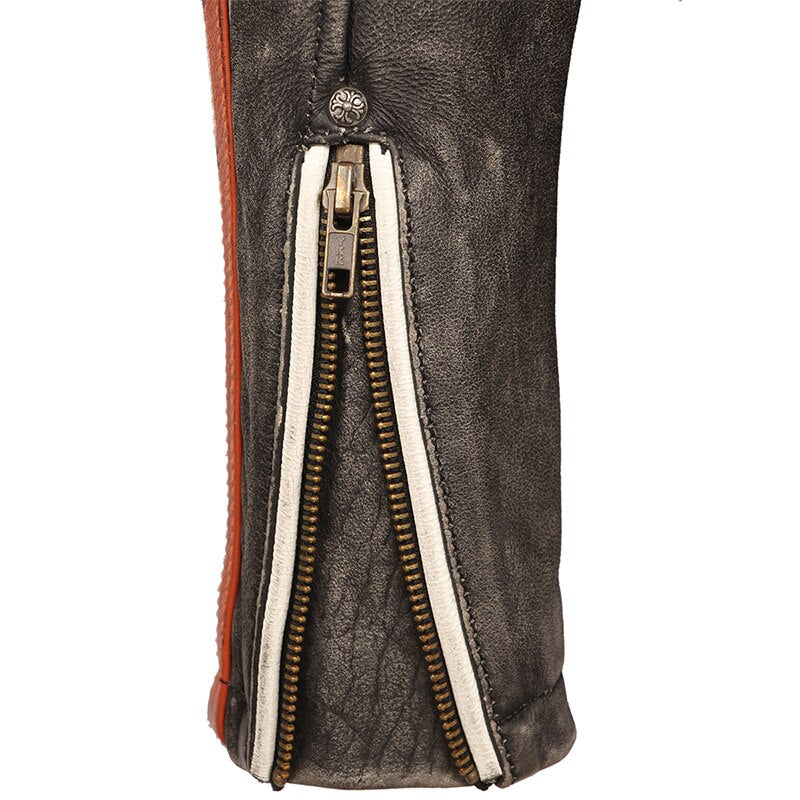 Pisani Maura is able to redesign any piece of garment in order to give it a more contemporary and unconventional look. This Limited Edition biker jacket, was created for all who have a real rocker’s soul. It is made of lamb leather and decorated with hand made effect prints and graphics. Padded and quilted details. Zipper fastening and zip-up pockets. Inner lining.