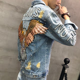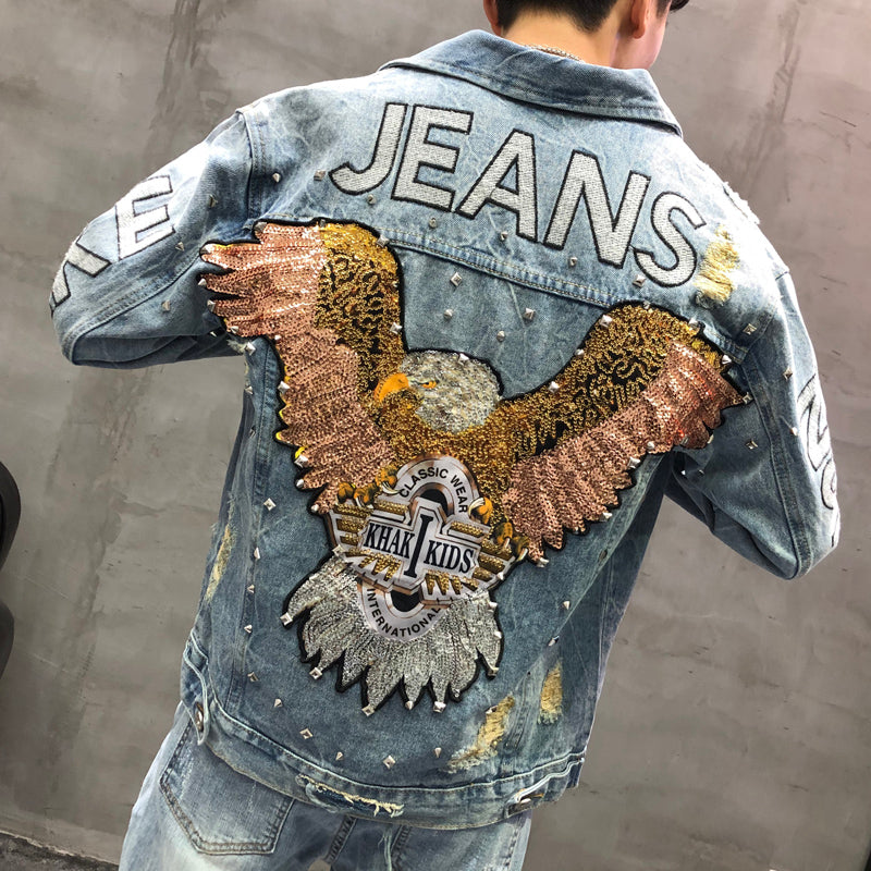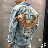 Straight from the runway - Pisani Maura gets inspired by the American flag as one of the most emblematic symbol around the world. Pisani Maura devotes this capsule collection to the quintessence of the cinematic history. This denim jacket features an embroidered open-wings eagle on the back. The Maison's hexagonal logo is sewn on collar. Button fastening and two button-up pockets. Ribbed cuffs. Shaped bottom hem. Inner padding and lining.