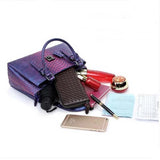 This patent purse is realized entirely with genuine python skins. Magnet and key fastening flap. Chain shoulder strap. Satin lining and inside pockets and compartments. Measures: h cm 18, w cm 30, d cm 13.